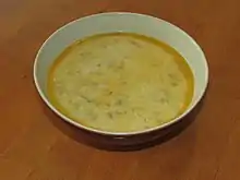 Zuppa toscana is a broad term, literally meaning "Tuscan[1] soup",[2] though in Italy it is called "minestra di pane", meaning "bread soup". Though there can be many variations on the same Italian food,[3] and though there are certainly many variations under the umbrella of the term 'zuppa toscana', classic zuppa toscana's main ingredients are cannellini beans, potatoes, and kale. A North American version, popularized by Olive Garden and made with Italian sausage, crushed red pepper, diced white onion, bacon, garlic purée, chicken bouillon, heavy cream, potatoes, and kale[4] is richer than the original.