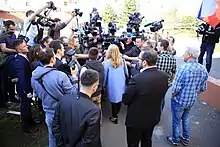 In a press conference held on 29 March 2018, Čaputová announced her bid for the Slovak presidency in the 2019 presidential race as the candidate of Progressive Slovakia. Robert Mistrík, another strong contender, withdrew from the race and endorsed her on 26 February 2019.[16] She said she had felt compelled to run for the Presidency after the murder of the investigative journalist Ján Kuciak.[17][18][19]