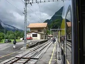 The Zweilütschinen railway station is on the Berner Oberland Bahn, whose trains operate services to Interlaken Ost, Grindelwald and Lauterbrunnen on an hourly or half-hourly frequency.[20][21]