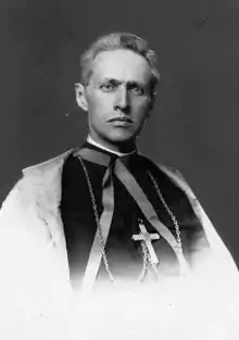 Pope Benedict XV appointed him as the Bishop of Minsk on 2 November 1917 and as such he received his episcopal consecration on 28 July 1918 in Warsaw from Cardinal Aleksander Kakowski - the co-consecrators were Stanisław Kazimierz and Blessed Antoni Julian Nowowiejski.[1] Soviet authorities arrested him on 1 August 1920 on the charges of "counter-revolution" but the pressure of local Christians saw him released on the following 11 August. He was arrested again on 4 September 1920 while the Polish government secured his release eleven months later in 1921 from Butyrka Prison; he weighed 95 pounds upon his release. Pope Pius XI appointed him on 28 October 1925 as the Bishop of Pińsk after his previous diocese was aggregated to the latter.[2][3]