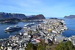 Ålesund is built on a row of islands extending towards the Atlantic. The compact old city centre is thus surrounded by water and Ålesund is one of Norway's major fisheries harbour (number 1 measured in revenue). To the east are the Sunnmøre Alps which offers a dramatic backdrop. Ålesund sits at the entrance to iconic Geirangerfjord, majestic Hjørundfjord as well as other great fjords in the Sunnmøre district.