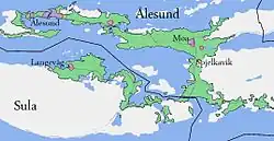 Ålesund is the regional centre, a hub for transport and shopping with about half of the population in Sunnmøre area. The old centre is cramped on a handful of islands, and a new centre has emerged some 10 km further east (inland) around shopping malls at Moa/Spjelkavika. Sunnmøre area stretches from the Stad cape to Romsdalsfjord, and from the ocean to eastern end of fjords.