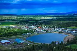 100 Mile House is a town of about 1,900 people (2011), and the main service centre of the southern Cariboo region of British Columbia. Its name harkens back to the days of the Cariboo Gold Rush when the settlement was little more than a roadhouse at the 100-mile mark of the Cariboo Wagon Road. There are amenities for the traveller although little in the way of attractions, but the surrounding area has many lakes, ranch resorts, cross country skiing and other outdoor activities.