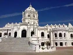 - 🌍 Ujjayanta Palace. Built by Maharaja Radha Kishore Manikya during 1899-1901, this is a two-storied mansion, with mixed type of architecture with three high domes, the central one being 86 feet high. The magnificent tile floor, curved wooden ceiling and beautifully crafted doors are notable. The palace has huge Mughal style gardens, beautified by pools and gardens. Flood lighting and fountains have also added to its beauty. Until 2011 it housed the State Legislative Assembly of Tripura.