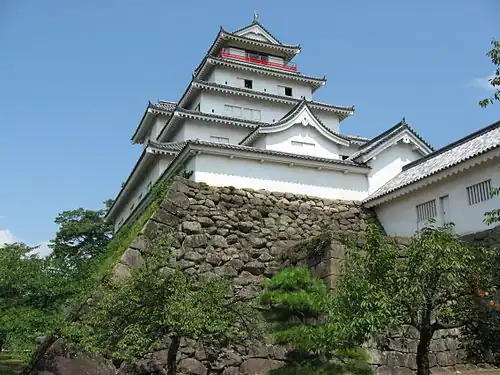 - 🌍 Aizu Wakamatsu Castle (Tsuruga Castle). A castle was built here in 1593, but the current building is a concrete replica. During the end of the Edo Period, the Aizu soldiers were defeated after one month of fighting to defeat the castle. The new government (Meiji Period) destroyed the castle in 1874. In accordance with its original design, the castle was built again in 1965 - it is considered to symbolize the samurai culture of Aizuwakamatsu. The castle contains five stories, which serve as a local history museum. Each floor focuses on a theme - Buddhist memorabilia, antique lacquerware and pottery, the Boshin Civil War and the Byakkotai. The fifth floor serves as an observation platform from where you can enjoy a splendid view of the entire Aizu valley. Near the entrance to the castle grounds is a souvenir shop selling a variety of goods from the Aizu region, and in the spring, the castle grounds are filled with cherry blossoms. The castle lookout is a good place to envisage exile: w:Shiba Goro writer of Remembering Aizu left this place of his dreams with the other exiles of the Aizu culture who were made scapegoats for the resistance to the Meiji restoration. Amazon Books has had extensive extracts for free from Remembering Aizu if you want a sample.
