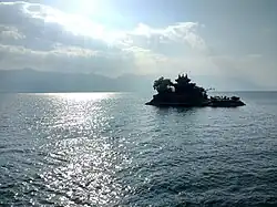 While you're in Shuanglang, you can visit 🌍 Nanzhao Island (南诏岛), which includes forest to hike through, a palace that you can't go into, and a few artificial-feeling attractions such as some statues in the water. There's no bridge; it can only be reached by ferry. The ferry terminal is near the end of that main road going through the village. Don't ride your scooter straight into the ferry terminal's main plaza (the security guard will yell at you if you try). Instead, turn left to find a parking lot where you can pay ¥10 to park for up to 12 hours or ¥15 for 12-24 hours. A round-trip ticket to the island costs ¥50. The ticket doesn't guarantee a seat on the ferry – you might have to stand – but the ride is less than five minutes.