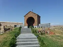 The cemetery contains the ruins of an ancient church or a chapel, around it there are gravestones and khachkars of the 10-15th centuries. The famous Armenian writer Vrezh Israelian, a native of the village, is also buried there. (Khachkars are characteristic of Medieval Christian Armenian art. A khachkar, or cross-stone, is a carved, memorial stele bearing a cross, and often with additional motifs such as rosettes, interlaces, and botanical motifs.)