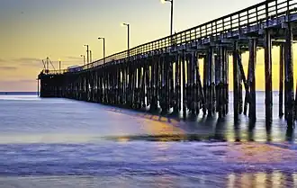 - 🌍 Avila Beach Pier. The main pier was built in 1908 and extends from the center of Avila Beach for 1,685 ft (514 m) out into the ocean. It is used primarily for recreational fishing and strolling. There are three piers in Avila Beach.
