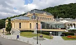 - 🌍 Kurpark (Spa Park), Kaiser Franz Ring - at the CASINO (second entry at Welzergasse 29 (Hotel Kurpark garni)). Baden's popular spa park has 52 ha and is thus one of the largest in Europe. Next to a beautiful landscape, piece and quiet, and relaxation, the spa park also offers numerous historical attractions: a Beethoven temple, the bandstand with daily concerts during the summer, several monuments of artists and emperors, the Undine fountain and a nostalgic park café. The garden is home to a variety of semitropical plants and fascinates visitors with decorative floral ornaments. There is a smooth transition from spa park to the Austrian pine forest of Vienna Woods with its many hiking trails at Kalvarienberg. free entry.