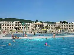 - 🌍 Thermal Baths (Thermalstrandbad), Helenenstraße 19, ☏ +43 2252 48670, thermalstrandbad@baden.gv.at. May daily 08:30-19:00; Jun-Aug M-F 08:30-19:30, Sa Su 08:00-19:30, Sep daily 08:30-18:30. In use since imperial days, this is one of the largest bathing facilities in Austria. It has an artificial sand beach, and offers the usual spa treatments as well as sporting facilities. Single entry €6.60-€9.40 (adults), €4.70 (concessions), block of 10 tickets €61-€89.
