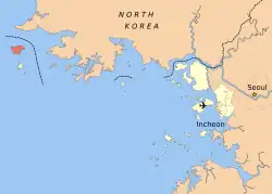 Baengnyeong Island (Baengnyeongdo, 백령도, 白翎島) is in Gyeonggi province in South Korea.