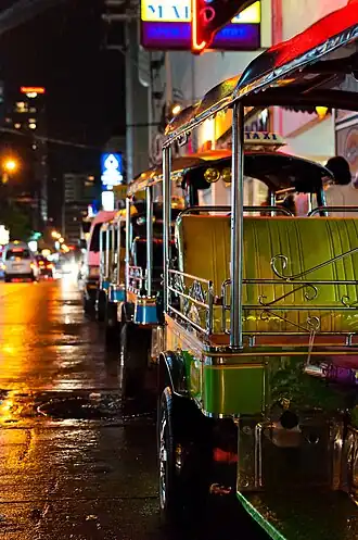 Sukhumvit (Thai: สุขุมวิท) is a high-end area in Bangkok with fancy condominiums, hotels, restaurants, bars and clubs. It has attracted affluent Thais and expats from all over the world. Following the road south east, the area changes its character and becomes a residential neighbourhood similar to other suburban areas in Bangkok.