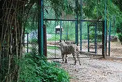A variety of animals are found in the park. Mammals live freely in the forest, and the visitors are taken around the forest in a well caged 'safari' mini-bus to view them. Partitions with huge gates and moats separate the forest into the Herbivorous section (with deer, elephants, bears and a few monkeys) and the Carnivorous section (with white tigers, lions, and Bengal tigers).