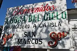 The name "Bocas del Cielo" means "mouth of heaven" and it refers to the opening in a slim sliver of barrier island, called San Marcos Island that separates the Laguna de Joya from the Pacific Ocean. The town itself is on the mainland, set back from the lagoon, but the island has several palapa restaurants and areas for hammock camping. It is popular with visitors, who mainly come from Tuxtla Gutierrez. Travelers from other Mexican states are almost as rare as foreigners.