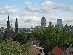 Mission Hill, previously Parker Hill, began to take the urban form it has today around 1870, after the construction of the eponymous Mission Church, which is designated as a basilica. Built and paid for by the mostly German congregation, the basilica is striking and can be seen in many views of Boston. The neighborhood is built up largely in wooden three-decker houses. Adjacent to the Longwood Medical area of hospitals and universities, Mission Hill plays host to a frequently rotating cast of young people. And the area affords some great views of the city from its high points.