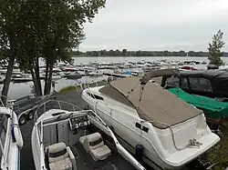 - 🌍 Marina de Boucherville, 535, boulevard Marie-Victorin (near the Sainte-Famille church, in Vieux-Boucherville), ☏ +1 450-655-9247. Access, launching and landing services for motorboats, pontoons, personal watercraft. The marina has a capacity of 99 berths and offers a mechanical repair service. A restaurant is in operation on site. Free.