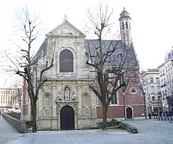 - 🌍 Church of Our Lady of Bon Secours (Église Notre-Dame de Bon Secours/Onze-Lieve-Vrouw van Goede Bijstandkerk), Kolenmarkt 89 (Anneesens 3 4 46 ), ☏ +32 69 84 78 14, annelies.aerts@bijstandsnetwerk.be. F 20:00-23:00. Church in Italian Baroque style, with an unusual circular three-aisled layout and a central hexagonal dome to which 3 semicircular apes connect. The facade consists of 3 bays, delineated by ionic pilasters on high plinths. Above the circular arch portal is the emblem of Charles of Lorraine — a reconstruction after the original was destroyed by French revolutionaries during the French occupation of Brussels. In the circular arc flanked by fire vases, a statue of Our Lady with Child, by Godefroid Van Den Kerckhove, decorates the facade along with shell motifs referring to Saint James. The impressive dome allows daylight to enter the building. The side aisle stands were innovative for their time. The high altar, in marble and timber, was designed by Jan Peiter van Baurscheidt the Elder in 1705. The later added cherubs and medallions on either side of the altar are attributed to Gilles-Lambert Godecharle. The side altars, dedicated to Saint Jacob and Saint Joseph, contain images of these saints by Jan Baptist van der Haeghen. The church originated as chapel of a 12th century inn, catering to the needs of travelers and pilgrims to Santiago de Compostella. By the end of the 16th century these pilgrimages had become less popular due to the religious disputes between the Netherlands and Spain. Jacob Meeus, the innkeeper, tried to increase business by organizing religious services centered around a 14th century Our Lady Mary statute that was attributed magical powers. It became a success, and the chapel was quickly too small, leading to the construction of the current church in 1664. Construction took over 30 years, with the original plans drawn by architect Jan Cortvrindt and after his death the work completed by 2 other architects. A few years after completion the church was heavily damaged in the bombardment of Brussels: the roof, dome and furniture were damaged and needed repairs. The church was briefly closed from 1797 to 1803 during the French Revolution, but reopened as an auxiliary of the St. Catherine's church. The bell tower, a design of Hendrik Partoes from 1850, now replaces the original one that had been removed in 1727. The facade was renovated in 1904.