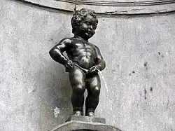 - 🌍 Manneken Pis, Stoofstraat 57 (walk south-west from the Grand-Place in the street adjacent to the City Hall). 24/7. A short walk from the Grand-Place/Grote Markt is the Manneken Pis, a small bronze statue thought to represent the "irreverent spirit" of Brussels. This is a statue of a child urinating into a pool. Belgians have created hundreds of outfits for this statue. There are many stories of the statue's origins. It is believed to have been inspired by a child who, while in a tree, found a special way to drive away invading troops. Another story goes that a father was missing his child and made a declaration to the city that when he found him he would build a statue of him, doing whatever it was that he was doing. It has also been said a witch turned him to stone for peeing on her property. Yet another story goes that Brussels was under siege and enemies had planted explosives in the city; a boy saw the lit fuse and urinated on it, preventing the explosives from blowing up thus saving the city. The most likely scenario is that it was the location of the market for urine, which was used for its ammonia content to tan leathers. None are definitively true. In 1747, Louis XV's soldiers stole the statue, upsetting many of the city's residents. Louis XV made it up to the city by giving the statue a medal of honor (so that he must be saluted when French soldiers pass by) and by giving him an outfit. He now gets dressed up on special occasions. Although a famous icon of Brussels and a source of inspiration for countless souvenirs, Manneken Pis is an overhyped attraction that frequently tops polls ranking the world's biggest tourist traps, and definitely not worth a major detour to take a look at. Free.