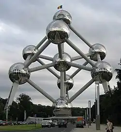 - π Atomium, Square de l'Atomium/Atomiumplein (Heysel M6 19 84 88 N18 ), β +32 2 475-4777. Daily 10:00-18:00. Ticket sales end at 17:30. Unavoidable icon of Brussels and Belgium, important place for international tourism, unique creation in the history of architecture and emblematic vestige of the World Fair in Brussels (Expo 58) the Atomium continues to embody its ideas of the future and universality, half a century later. In its cultural programme it carries on the debate of 1958: what kind of future do we want for tomorrow? Our happiness depends on what? Its renovation in 2006 gave its original brightness back, and the new equipments guarantee its durability. Five of the nine spheres are open to the public (so they say, but not really true). One of them is housing a permanent exhibition dedicated to Expo 58 (just some small models of some countries pavilions). Another sphere is dedicated to temporary exhibitions with scientific themes (often closed when there is no exhibition). The upper sphere offers spectacular views of the city of Brussels. When the sky is clear, the view reaches till Antwerp. There is a "kids zone" sphere which staff will happily direct you to even though you can never go in, it is only open to touring schoolchildren, and there is nothing inside except places for kids to sleep. In truth there are only three spheres: the top (restaurant), middle (snack bar) and bottom; the only thing to see really is the view; rather expensive at β¬11. The restaurant, also at the top, is open every day till 23:00 At night, the nine spheres are lit up with 2,970 lights that offer a very special show. To enrich your visit: audioguides in English (but also in French, Dutch, Spanish, Italian and Russian) are available at the cash desk for β¬2. Visio-guides are also available (β¬2) for the deaf and hard of hearing people. A zip-line is available from the top of the tallest sphere (102 m); the "Death Ride" (run by former members of the Belgian Special Services) is a separate β¬25, and offers a rather unique view of the insides of the Atomium and the surrounding city. Children of less than 6 years, coach drivers, disabled persons: free, children as from 6 years till 11 years: β¬2, adults: β¬12, teachers showing their teacher card: β¬9, children as from 12 till 18 years, students showing their student card and seniors (as from 65 years): β¬8.
