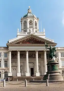 - ๐ Church of St. James on Coudenberg (รglise Saint-Jacques-sur-Coudenberg/Sint-Jacob-op-Koudenbergkerk), Koningsplein (Koning 38 71 92 93 N06 N08 N09 N10 N11 N12 ), โ +32 2 502 18 25, info@paroisse-militaire-saint-jacques-sur-coudenberg.be. A neoclassical church on the historic King's Square, overlooking the lower city and offering a magnificent view over the Grand-Place (particularly at dusk!). It started as a medieval abbey church, which was demolished by Charles Alexander of Lorraine during his expansive urban planning projects, despite having escaped the great fire of 1731 that destroyed the nearby Coudenberg Palace. The church was designed by architect Gilles-Barnabรฉ Guimard, and the first stone was laid down by Charles Alexander himself in 1776. After the building's consecration, it was used as an abbey- and parish church simultaneously, and in addition it was the official church of the court of the Governors of the Habsburg Netherlands. Since it was designed to serve the church of the abbey of Saint-Jacques, it has a deep extended choir with place for choir stalls for the monks. During the French Revolution, as with all other religious buildings, the abbey was suspended and the church converted into a Temple of Reason, but restored to Catholic control in 1802. It played an important role in the inception of the Belgian monarchy 30 years later, when the first Belgian king, Leopold I, made his oath on the front steps of the church. Although the building lost some of its typical neoclassical temple-like appearance by the addition of a bell tower in the 19th century and a coloured fresco on the pediment, it remains one of the most unusual examples of religious architecture in Brussels.