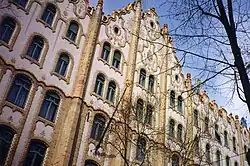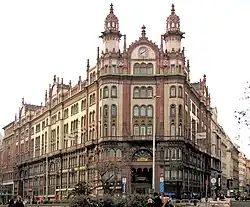 Vörösmarty tér). It is a former bank building. Built between 1909-1913, by Alpár Ignác, in late eclectic Art Nouveau style. A five-story stone covered brick building with Patio.