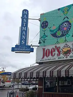 Perhaps the greatest change to take place in North Buffalo at this time, however, was in its ethnic makeup. In the early and mid-1960s, as the Lower West Side fell to the wrecking ball as part of a misguided campaign of "slum clearance", many of the Italian-Americans who'd been evicted from those blocks began to drift into the vicinity of Hertel Avenue, displacing the Jewish community in that area which dispersed over the ensuing decades, largely into suburban Amherst. Even the Italian Village Festival, heretofore held on Connecticut Street in the West Side, picked up stakes and moved north in 1988, where it went on to become one of the biggest Italian-American street festivals in the nation. But by 2011, when the city government finally got around to officializing this change by festooning the streetlamps along Hertel with handsome red-white-and-green signs reading "Welcome to Little Italy", it was almost too late: the next phase of its demographic evolution was already in progress. The whole city was on an upswing at this time, and in its toniest neighborhood, the Elmwood Village, gentrification had proceeded to such a degree that small businesses could no longer afford the astronomical rents their landlords were charging. Many Elmwood shopkeepers and restaurateurs chose to move elsewhere in the city, and the already thriving but significantly less expensive Hertel strip was a prime destination for those displaced businesses. The result has been not only that Hertel has overtaken Elmwood as Buffalo's liveliest shopping, eating, and nightlife street, but also that Little Italy is getting progressively less and less Italian: the older pizzerias, bakeries, and wine bars are nowadays joined by a diversity of new shops and businesses catering to every taste.