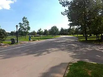 Away from Delaware Park, University Heights boasts North Buffalo Rails-to-Trails, a network of paved multi-use trails, 1.4 miles (2.2 km) in total length, straddling the former Erie Railroad right-of-way. The main branch begins at the back end of the Park & Ride lot at LaSalle Metro Rail Station and extends along the west side of the old railroad embankment, with access to Shoshone Park near its south end. On the opposite side of the embankment is the π Minnesota Linear Park, which (along with a short spur west to Taunton Place) converges with the main line near the west end of Merrimac Street. From there, the route continues further northwest to the city line at Kenmore Avenue, whenceforth the Tonawanda Rails-to-Trails leads into downtown Tonawanda, with a further extension planned to connect to the Erie Canalway Trail. The entirety of the network is open to both cyclists and pedestrians, but the former are better off sticking to the straighter and better-maintained main line, while the latter are safest in the Linear Park, which unlike its counterpart is outfitted with security cameras.