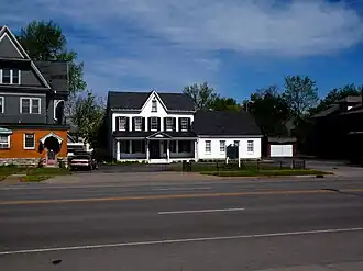 Located immediately north of the city, Kenmore was Buffalo's first real suburb: its history can be traced back to 1889, when real estate speculator Louis P. A. Eberhardt purchased a tract of farmland at the corner of Delaware Avenue and Town Line Road (today's Kenmore Avenue), at the center of which the National Register-listed Eberhardt Mansion still stands. But Kenmore is far from the faceless tract of cookie-cutter housing most people picture when they hear the word "suburb" β Delaware Avenue, the main drag through the village, is a lively strip of shops and restaurants that combines urban hipness (in an accessible, Hertel Avenue way; not a pretentious, Elmwood Village way) with small-town charm.