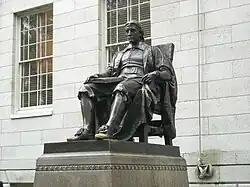 - π Harvard Yard. The center and oldest part of the Harvard campus. An enclosed grassy yard including picturesque buildings dating as far back as 1720. The freshman undergraduate dorms are located in Harvard Yard, which means that a long list of famous intellectual and political figures have lived here. Near the center is a statue of John Harvard, for whom the university is named. Tour guides will tell you that students rub the statue's left foot for good luck before exams, and the foot is indeed rubbed shiny. But in reality, most of the rubbing is probably done by tourists rather than students. It is also school tradition of some secret societies at Harvard to pee on the boot of the foot.