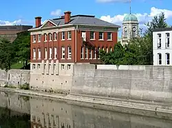 Galt: In the late 1700s, developers began to buy land around the Grand River from the Six Nations Indians. The land was divided and sold particularly to Scottish settlers. The planned community was named in honour of John Galt of the Canada Company which was developing this entire area. Primarily agricultural in early years, Galt had attracted industry by 1840, and was called "Manchester of Canada" because of the extensive industry, powered by the Grand River. The railway reached Galt in 1879, increasing the opportunities of exporting local goods and importing others.