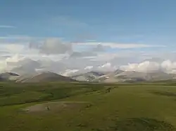 Arctic tundra dominated by permafrost. Lowland areas have thermokarst features including pingos, polygon ice wedges, and thaw ponds. Low vegetation covers the land, mainly in tussocks of cottongrass, with shrubby growth of willow, Labrador tea, dwarf birch, mountain alder and other species in moist tundra areas. Wetter areas in the southern part of the monument feature grasses and sedges. Upland regions are Arctic tundra, with lichen, saxifrage, willow and heather. Few trees grow, and the white spruce that do grow are confined to the southeastern corner of the monument.