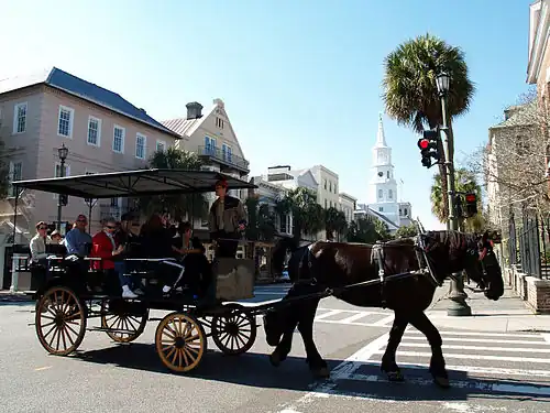 A great way to tour the city is by carriage drawn by horses or mules (many vendors available at the Market in downtown Charleston), although one might prepare oneself for some derisive comment and exasperation from locals inconvenienced by such quaint methods of transit.