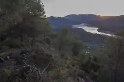 The Tranco de Beas reservoir covers a cascade of strong rocks that mark the end of the Cazorla Mountains to the west and the Segura Mountains to the east. On the hills, overlooking the reservoir, are woods on the steepest sides, with olive trees and pasture on the gentle slopes near the rural villages. To the north of Hornos, El Yelmo is the most important crag at the head of the reservoir; on its peak, the limestone capriciously changes from one shade of grey to another depending on how humid the rock is and how intense the sun is, giving an insight into the movement and size of the clouds that pass over the reservoir.