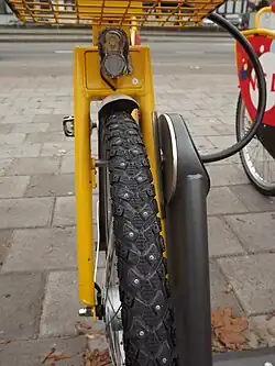 Bike thefts are common in many countries. Although locks cannot prevent theft entirely, they can discourage it. This is especially true if there are easier targets nearby, ideally posher than yours. A good lock is both hard to pick or decode, and hard to bypass with cutting tools or brute force. Fasten the lock in some stationary object when possible, and ideally through any quick release wheels as well. In some areas, bikes should not be left outdoors overnight.