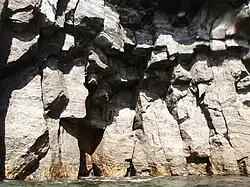 - Topography: — High profile boulders and bedrock at base of cliff with lots of gaps, holes, overhangs, gullies and pinnacles.