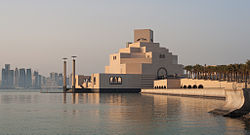 - 🌍 Museum of Islamic Arts, Next to Doha Port, on the Corniche (Route 76 bus; shuttle bus), ☏ +974 4422 4444. S M W 10:30-17:30; Th Sa 12:00-20:00; F 14:00-20:00. Doha's flagship museum. Housed in a building designed by I.M. Pei, the museum hosts artefacts from Muslim dynasties all over Asia, Africa and Europe. Also present are items from the Al-Thani dynasty, as well as art from all parts of the Middle East. Gloriously air conditioned, there is also a cafe and gift shop. The permanent exhibition is on the 2nd and 3rd floors, with temporary exhibitions on the ground floor. Free wi-fi in the museum building, dress appropriately. An hourly shuttle service provides free transportation between MIA and Mathaf W-Su 11:00-17:00; driving time between the two museums is 25-35 minutes. Free.