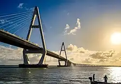 - 🌍 Cross-Sea Bridge (东海岛跨海大桥). The Donghai Island Cross-Sea Bridge is 32.5 km long, one of the longest cross-sea spans in the world.