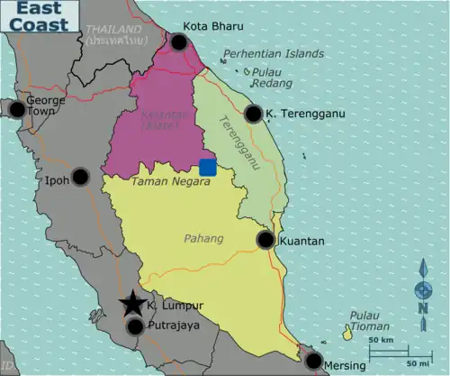 The East Coast is a part of Peninsular Malaysia. Largely rural and comparatively poor, the East Coast's prime attractions are some of Malaysia's most unspoiled islands, featuring great beaches and excellent scuba diving.