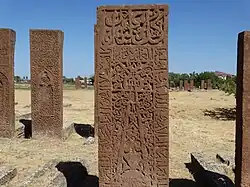 Northeast of Tatvan, the medieval cemetery at Ahlat is known for its massive, highly elaborate headstones cut from dark volcanic rocks, similar to the Armenian khachkars.