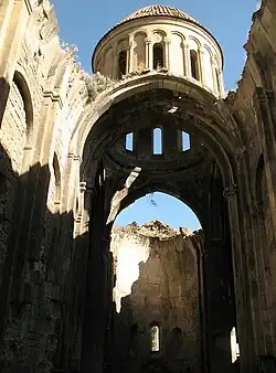North of Erzurum, a major highway follows the Çoruh River towards the Black Sea coast. The local mountains are dotted with the ruins of numerous castles and churches built by the medieval Georgian kingdom. The most impressive site is perhaps the Öşkvank Monastery in the village of Çamlıyamaç, about 100 km (60 mi) from Erzurum.