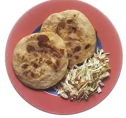 Also Salvadorans eat fried sliced plantains (platanos) usually with beans, sour cream, cheese and sometimes eggs, yuca con chicharron, pastelitos de carne, panes con pavo (turkey sandwiches), hand made tortillas among other very delicious Salvadoran foods.