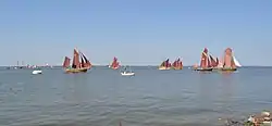 - 🌍 Zeesboote sailing boats "Sannert" and "Blondine" at Althagen harbour, Contact "Räucherhaus", Am Hafen, OT Althagen, 18347 Ahrenshoop, ☏ +49 38220 6946, raeucherhaus@t-online.de. Regular sailing trips daily at 10:00, 12:00, 14:00, 16:00 (18:00 only by prior appointment); all trips may be cancelled at short notice due to bad weather. 90-minutes trip €14 per adult, €7 for child under 13, free for children under 3.