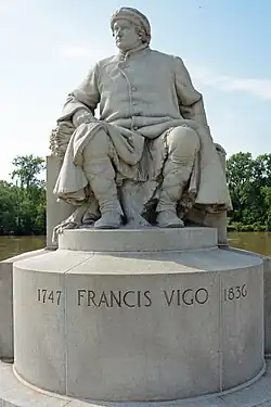 The park is located on the banks of the Wabash River on the site of what is believed to be Fort Sackville. A remarkable statue of Clark stands 7.5 ft (2.3 m) tall in the middle, surrounded by seven murals discussing the history of the Clark's life.