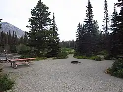- 🌍 Many Glacier (from Highway 98, take Glacier Route 3 west into park; the large lake on the left is Lake Sherburne), ☏ +1 406 888-7800. 109 sites, 1 group site. 41 sites can be reserved in advance. Large, popular campsite near the Swiftcurrent Motor Lodge, restaurants, token-operated showers, and the Swiftcurrent Pass, Piegan Pass, Grinnell Glacier, Iceberg Lake, and Ptarmigan trailheads. Also useful for backpackers through-hiking the Continental Divide National Scenic Trail (of which Switftcurrent Pass and Piegan Pass Trails are a part). The campground is situated within trees for tent and RV campers, though there are only 13 sites that can accommodate vehicle lengths up to 35 feet in length. Bring your binoculars, as there are opportunities to view wildlife like bighorn sheep, moose, and bears. Flush toilets, sinks, and nightly ranger-led programming. Open late May to late Sep. $20 per night in the off-season, $23 per night in summer (2020 rates).