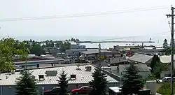 There is an airport a few miles out of town, up on the ridges overlooking the lake, but no scheduled service.