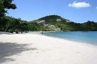 - Beaches: Grand Anse is the one in all the tourist brochures, a classic sweep of palm-fringed sand. But it's narrow, having suffered erosion, and waves may break right over it. All the water sports facilities are based here. Beyond the headland west are the much quieter BBC or Morne Rouge Beach, then Paradise Bay towards Sandals resort. Small sandy coves are found right round the island though the coast is mostly rugged, and the east is exposed to the Atlantic. Black beaches are made of volcanic sand, for instance Black Bay near Concord on the west coast.