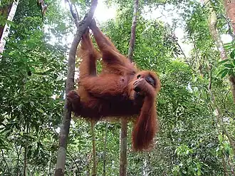 - Ketembe - you will see real wild living orangutans (in Bukit Lawang the orangutans are all rehabilitated semi-wild), monkeys and many kind of birds. It's not uncommon to see other mammals such as gibbons, barking deer, civet cats, binturong, mouse deer and leopard cats. There are also Sumatran elephants, tigers and rhinos, but these are incredibly rare to see. On a 2- to 3-day trip you can go to a natural hot spring inside the jungle and camp over there. The treks are not very strenuous as the emphasis is on finding wildlife not hiking. On a longer trip (7-10 days) you can go deeper into the jungle and look for some shy tigers or explore remote jungle wilderness. (Prices: Rp 350,000 per person per day, 2014)