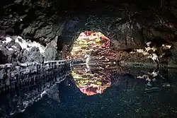 - 🌍 Jameos del Agua, Punta Mujeres. Daily 10:00-17:30. A jameo is a Canarian word which means a lava tunnel where the roof collapsed to expose a gully, and also describes tunnels entered through such a gully. This one is part-flooded and has been prettified with a bar, restaurant, swimming pool and concert hall. It all feels a bit like a Sandals Resort, except for the blind albino crabs. Adult €10, child €5.