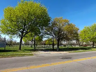 Continue down Sycamore Street. After about a third of a mile (550 meters), just before the overpass of the old Suspension Bridge and Niagara Junction Railroad, Sycamore merges with Walden Avenue. At the fork, look to your left and you'll see 🌍 Concordia Cemetery, the second-largest in Buffalo. If you're especially interested in local history, this might be a good place to take a break from the tour: Concordia has been listed on the National Register of Historic Places because of its importance to the history of Buffalo's German community, as well as its well-preserved collection of tombstones representing a range of 19th-century styles. Concordia was founded in 1859 by a trio of German Protestant churches—First Trinity Lutheran Church, St. Peter's German Evangelical Church, and St. Stephen's Evangelical Lutheran Church—and boasts a simple design that's more typical of the early 19th century than the exquisitely landscaped "rural cemeteries" of its day, a rectangular plot divided into three sections that correspond to the three respective churches. In sharp contrast to the then-skyrocketing price of land in the urbanized area of Buffalo, the rural farmland past the edge of town was still affordable enough for the three churches to pool their money and buy a 15-acre (6 ha) plot to use as a place to bury their dead. Today, Concordia contains the remains of 17,000 individuals, mostly working-class immigrants whose headstones are, in many cases, inscribed only in German—these inscriptions include a particularly disturbing one belonging to a murder victim.