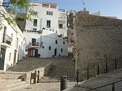 The town is divided into two main parts: the old town, called the Dalt Vila (literally "Upper Town"), which is on a little mountain by the sea, and the modern part, called the Eixample ("extension").